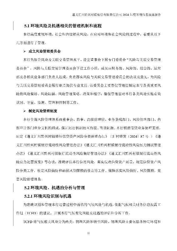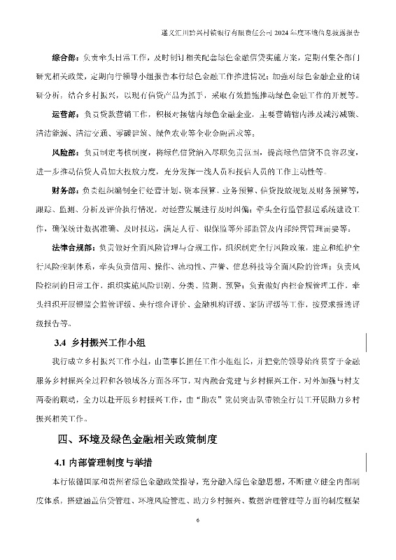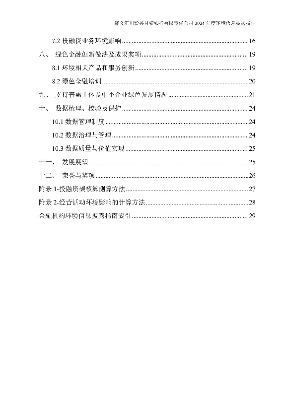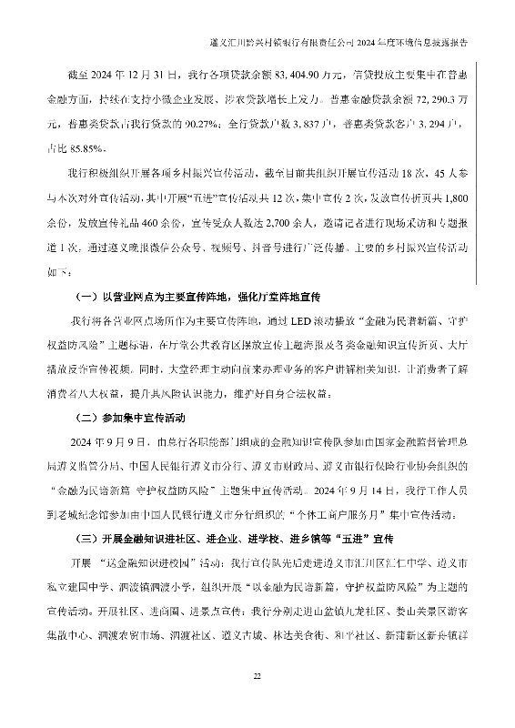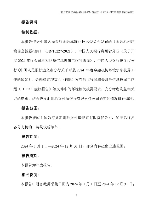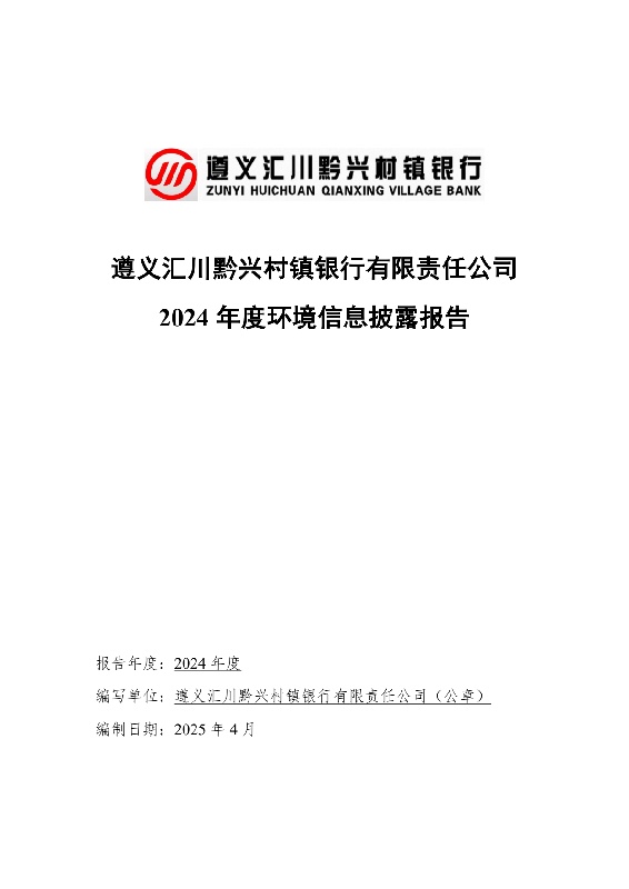 汇川黔兴村镇银行2024年度环境信息披露报告
