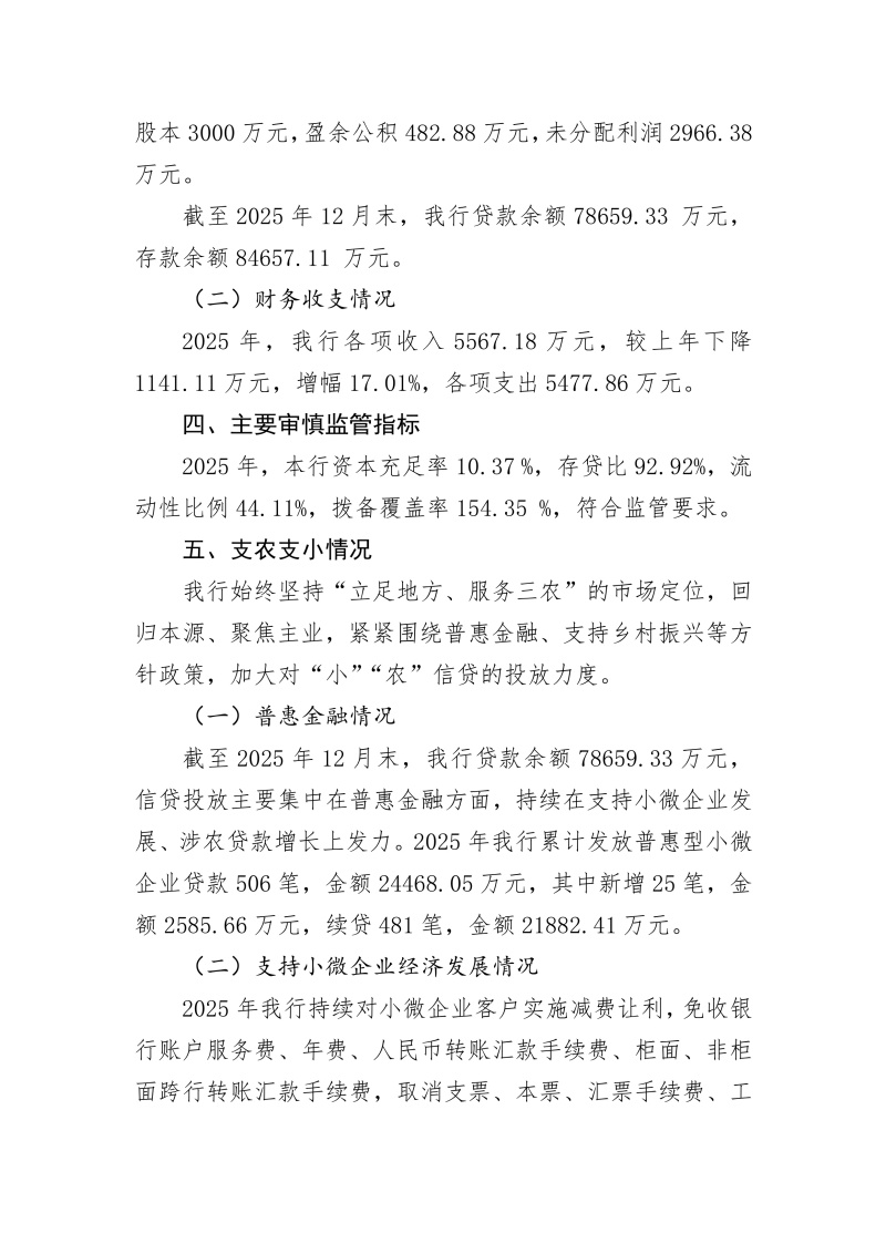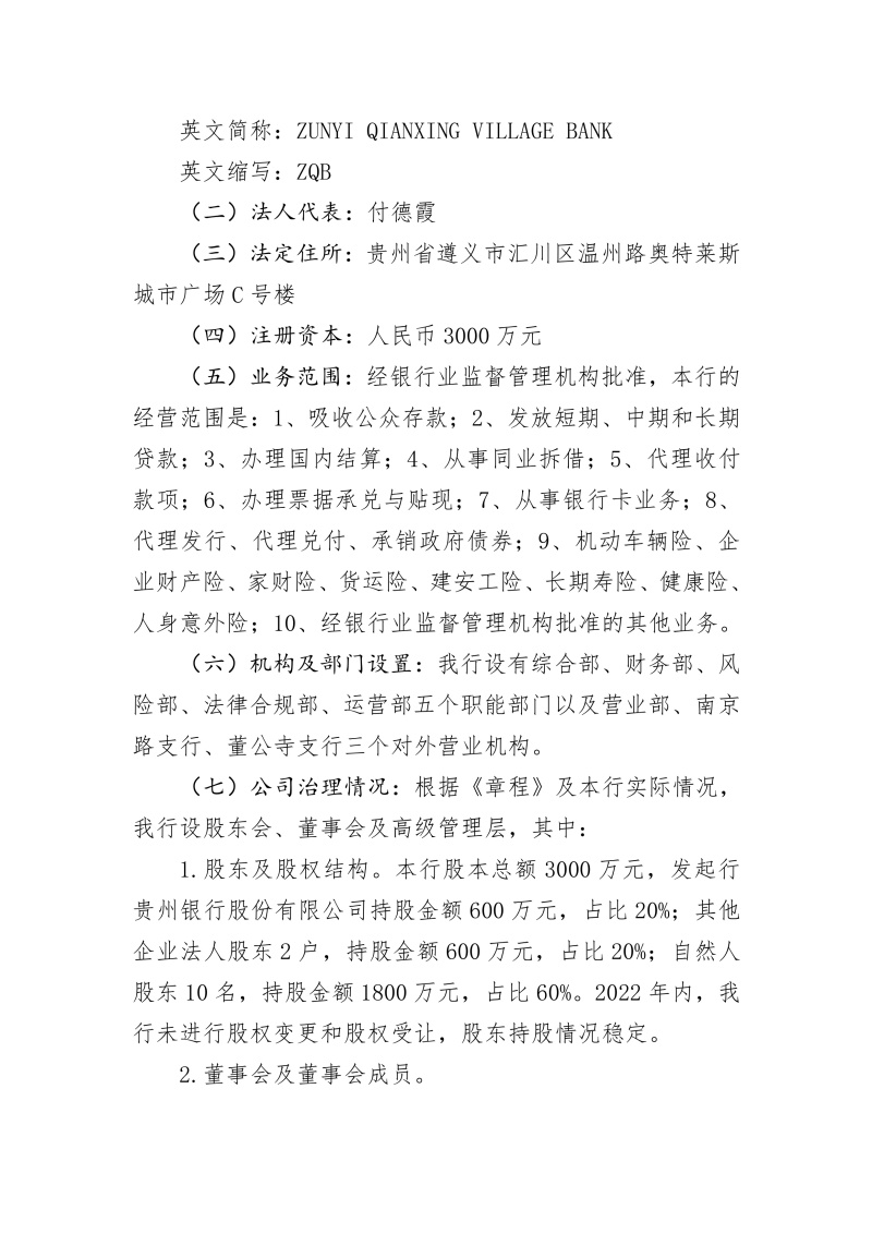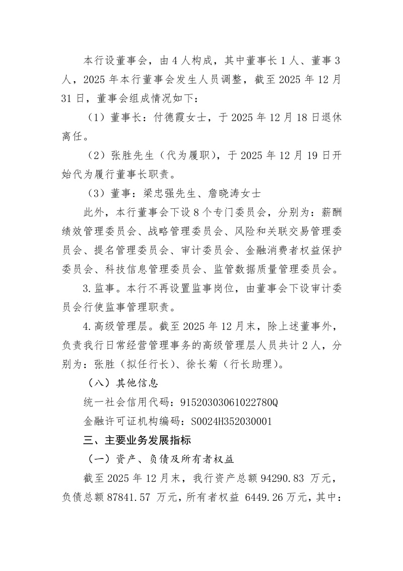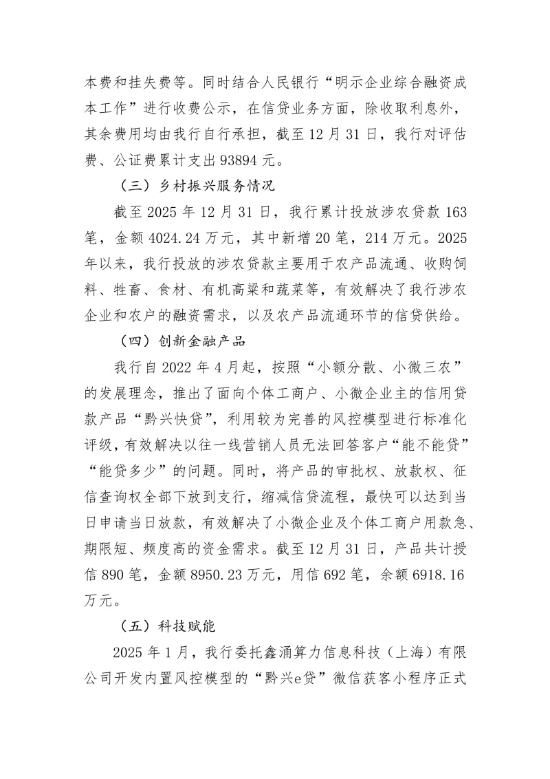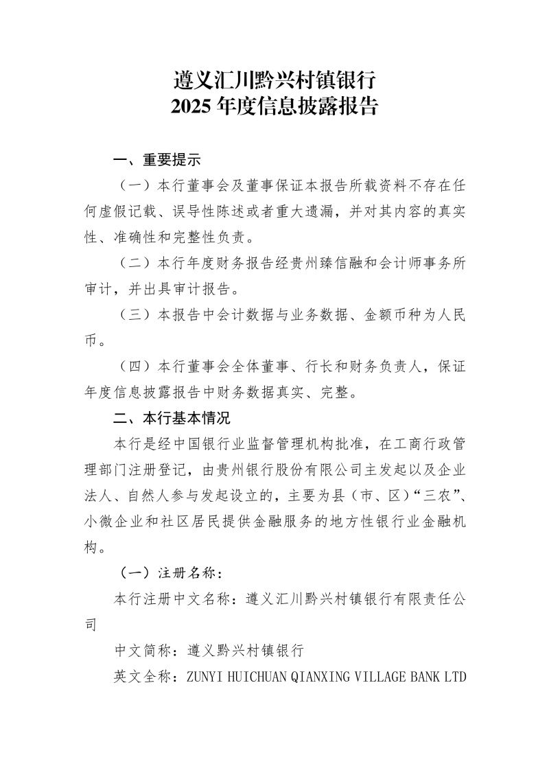 遵义汇川黔兴村镇银行2025年度信息披露报告