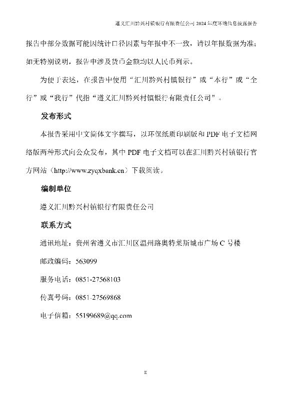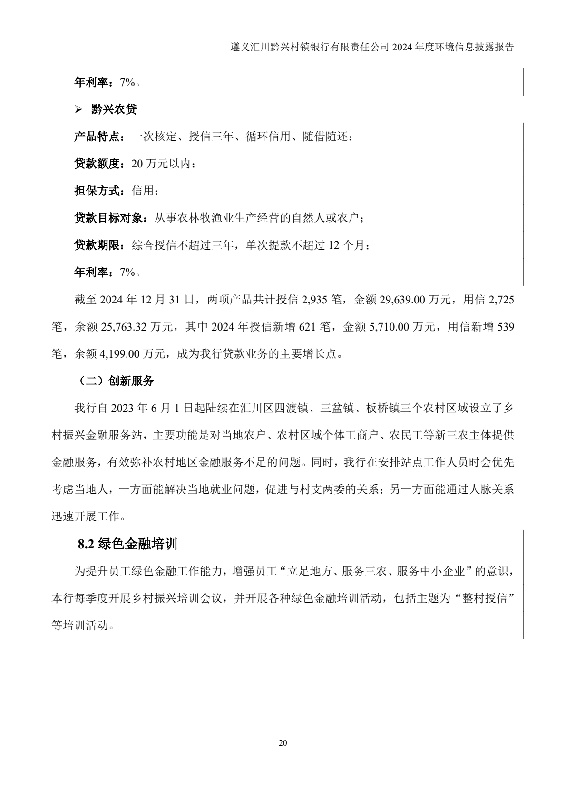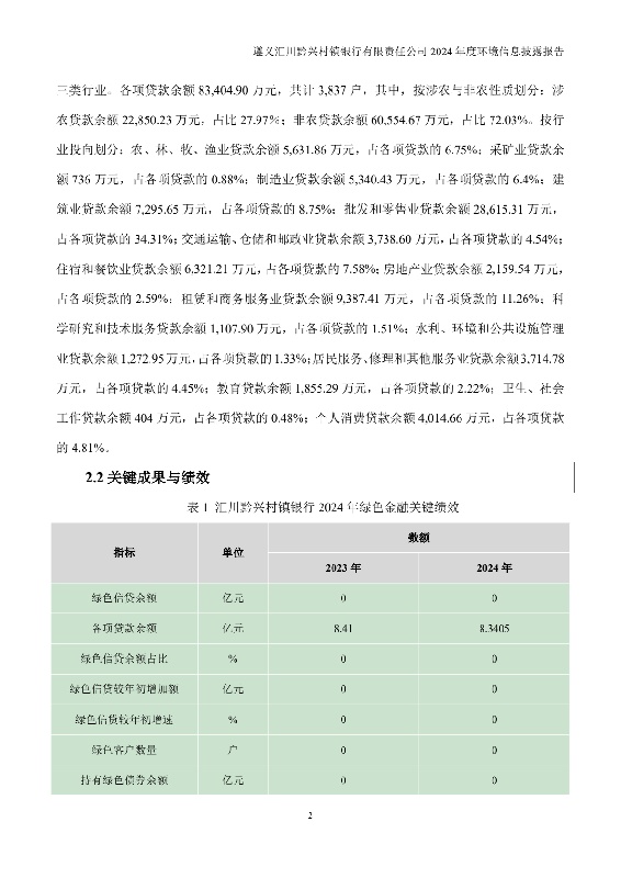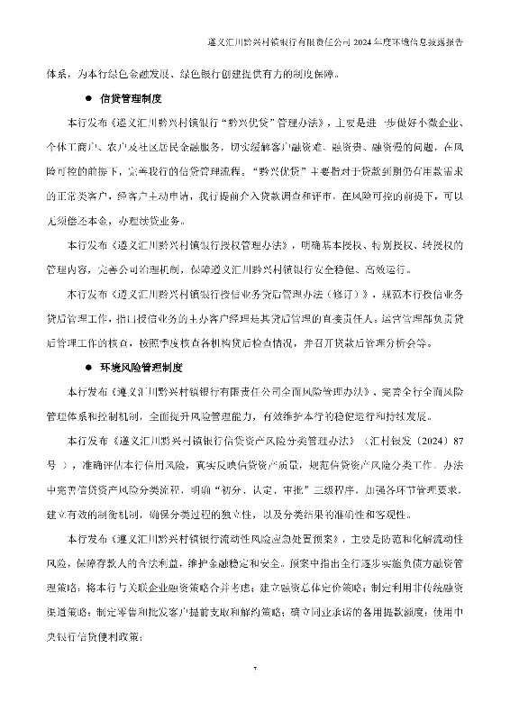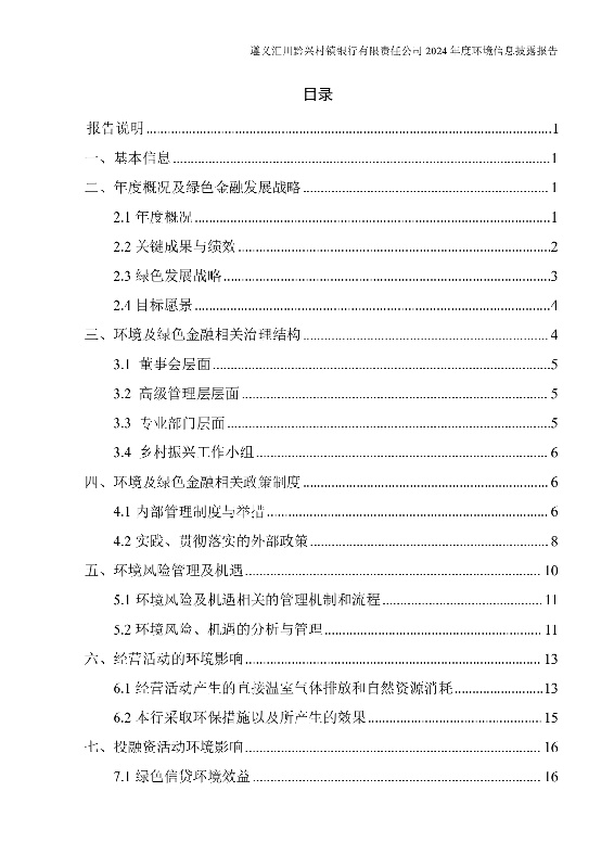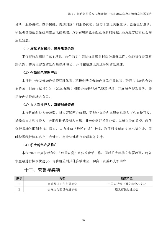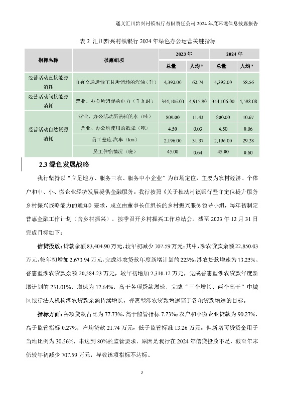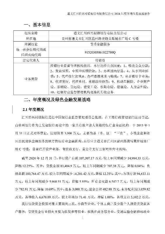汇川黔兴村镇银行2024年度环境信息披露报告