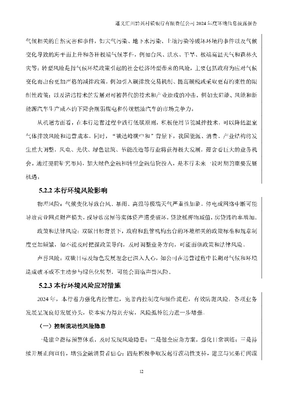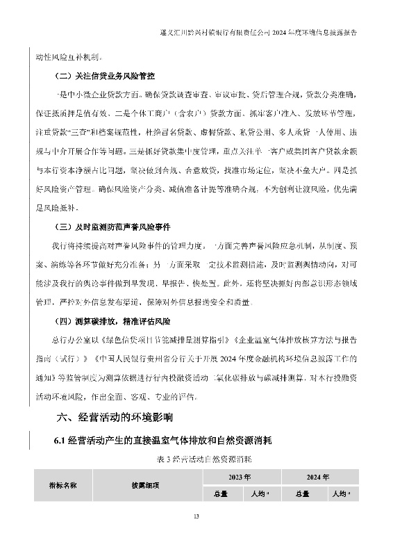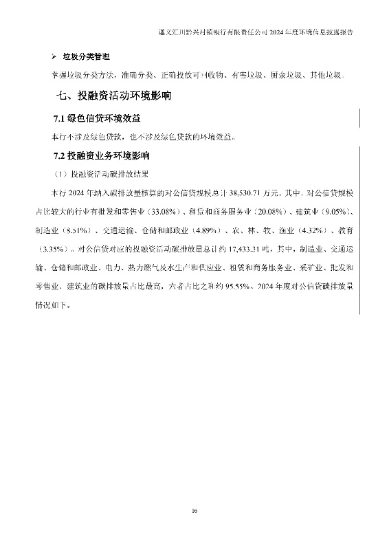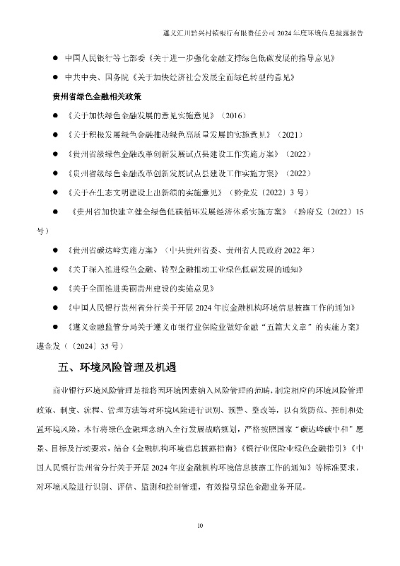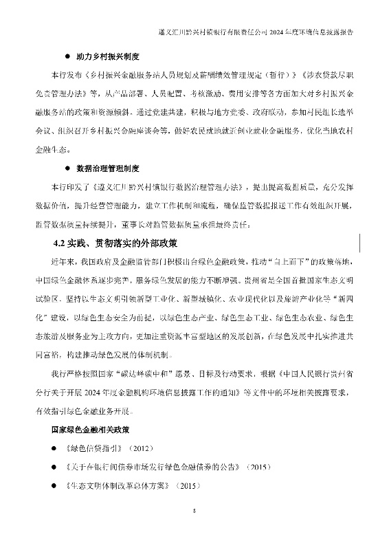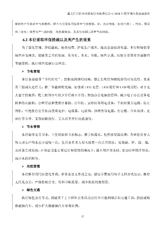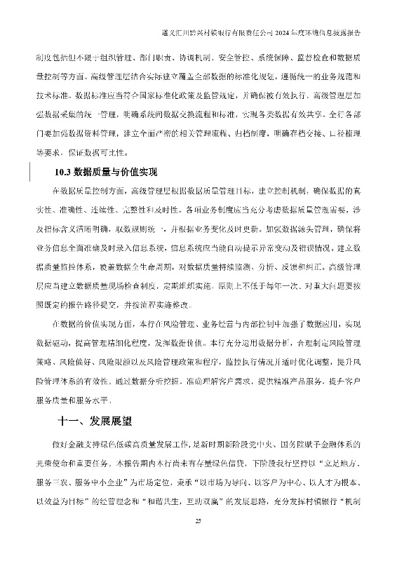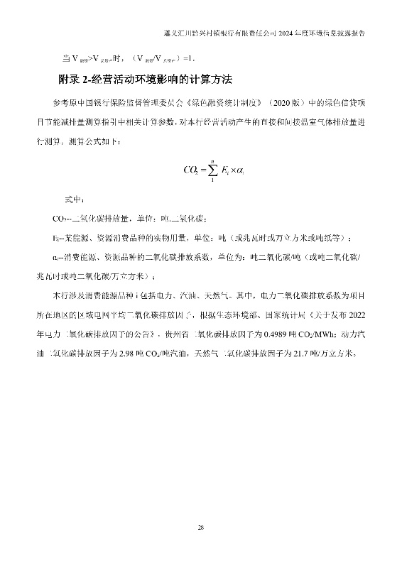 汇川黔兴村镇银行2024年度环境信息披露报告